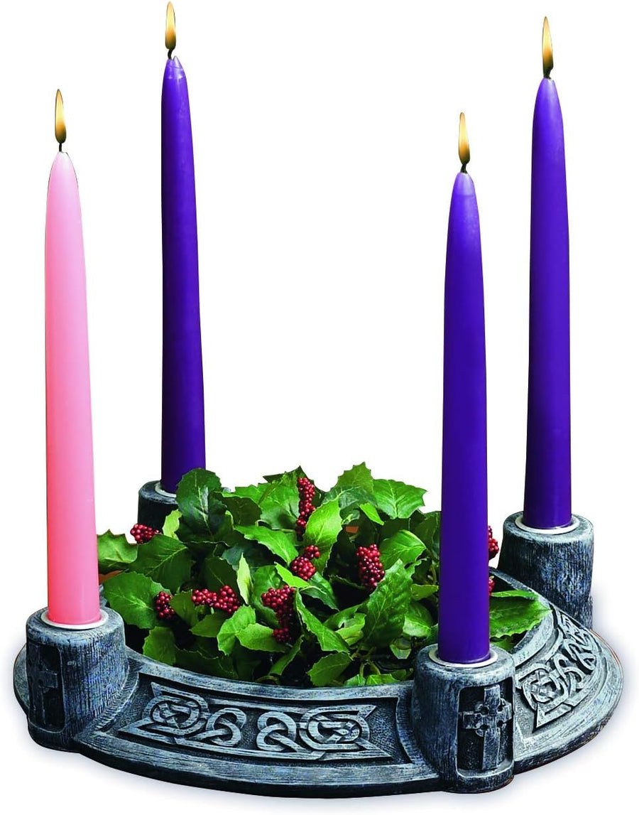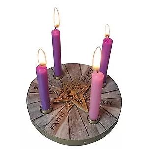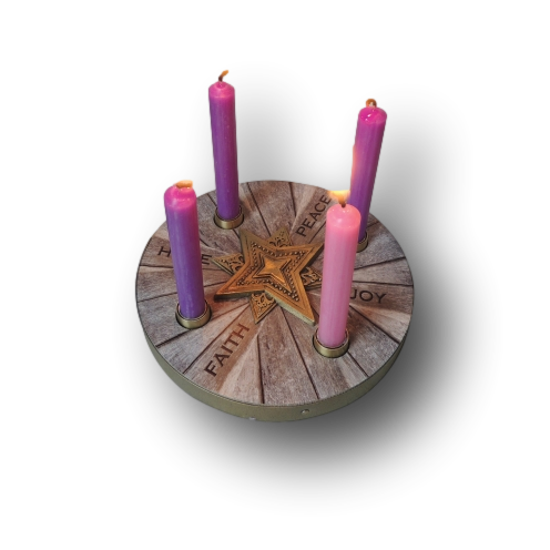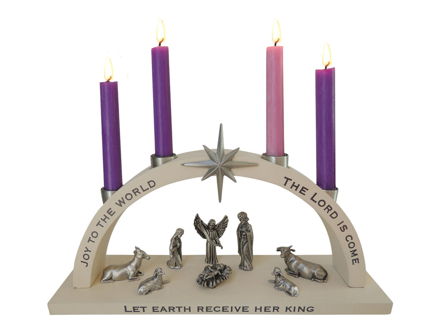 The Holy Family Advent Candle Holder is a unique spin on a Christmas Tradition and makes a beautiful centerpiece with its silver dot trim. Candles sold separately