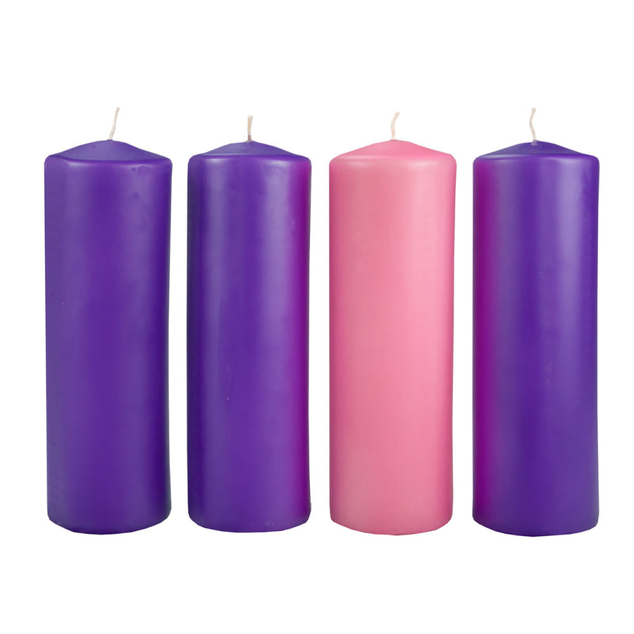 These 3" x 9" Advent Pillar Candles consists of 3 purple pillar candles and 1 pink pillar candle