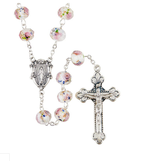 10mm x 8mm White Murano Collection Hand Painted Rosary