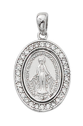 Sterling Silver Miraculous Medal with Crystal Stones Includes 18" Rhodium PLated Chain and Deluxe Gift Box