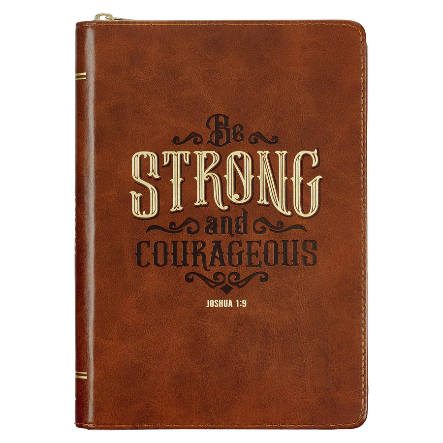 Strong and Courageous Honey-brown Faux Leather Journal with Zipper Closure - Joshua 1:9