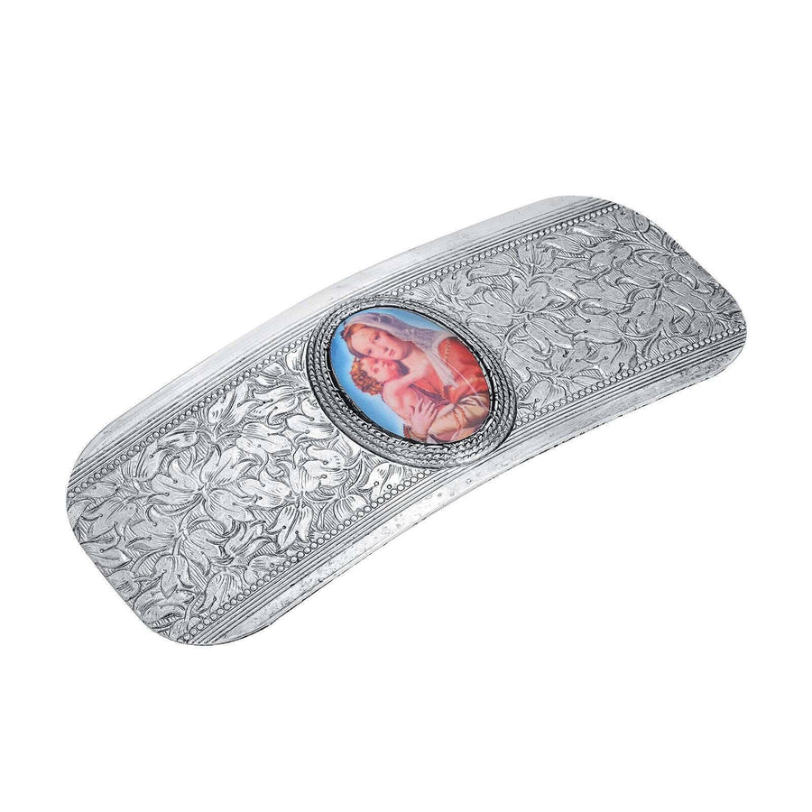 Ornately designed barrette featuring etched floral patters with a beautifully made Mother and Child oval decal.