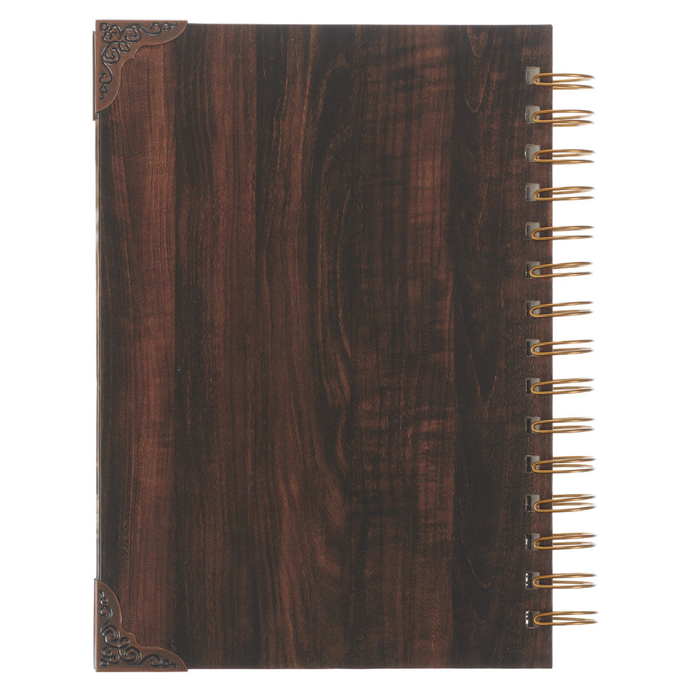 Find daily encouragement from the Bible at the bottom of each of the 192 lined pages. The journal is bound by bronze double o-wire binding, making it easy to flip over the hardcovers to use as support for writing.