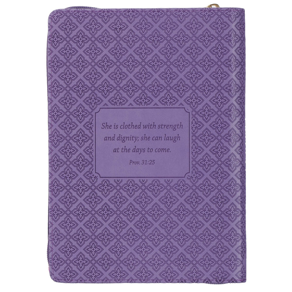 The enchanting hummingbird design of the Strength & Dignity Hummingbird Purple Faux Leather Classic Journal with Zipper Closure evokes a sense of wonder at the beauty of God's creation. This image, paired with the text from Proverbs 31, is a fitting tribute to honor the mother or mentor in your life who faces life's challenges with courage and grace.