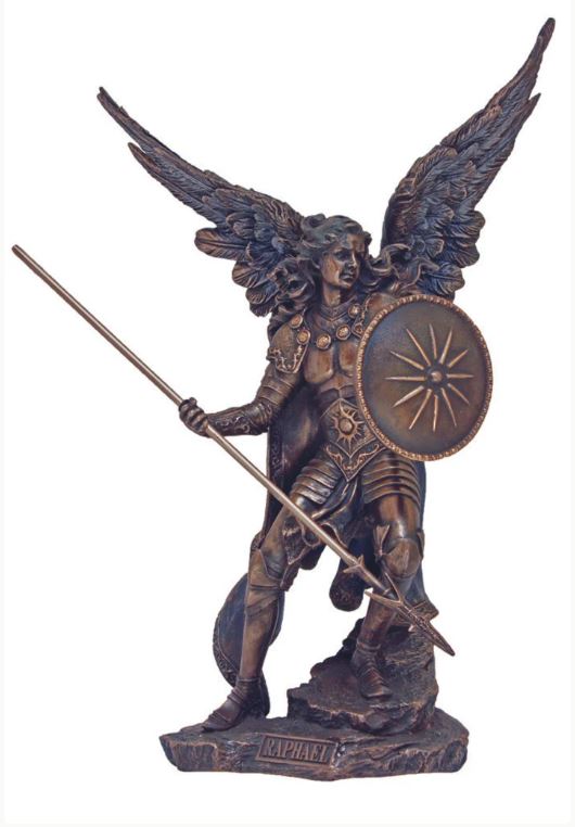 Archangel Raphael in lightly hand-painted cold cast bronze
