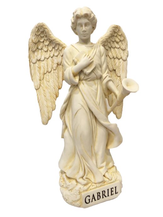 Archangel Gabriel, also known as the Messenger of God, is depicted with his horn.