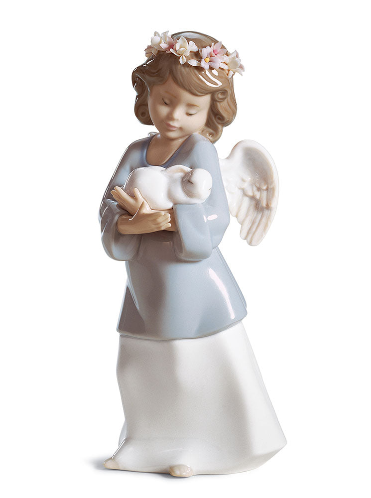 The tender and innocent creatures also have angels who care for them lovingly. A glossy porcelain creation decorated in soft pastel colours, perfect as a gift, a collectible or a decoration.