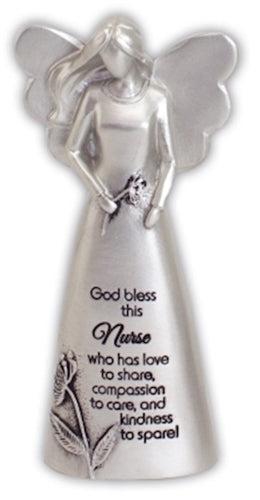 Graceful sculpted angel with warm blessings for a special Nurse. A beautiful angel that reads; "God bless this nurse who has love to share, compassion to care, and kindness to spare."