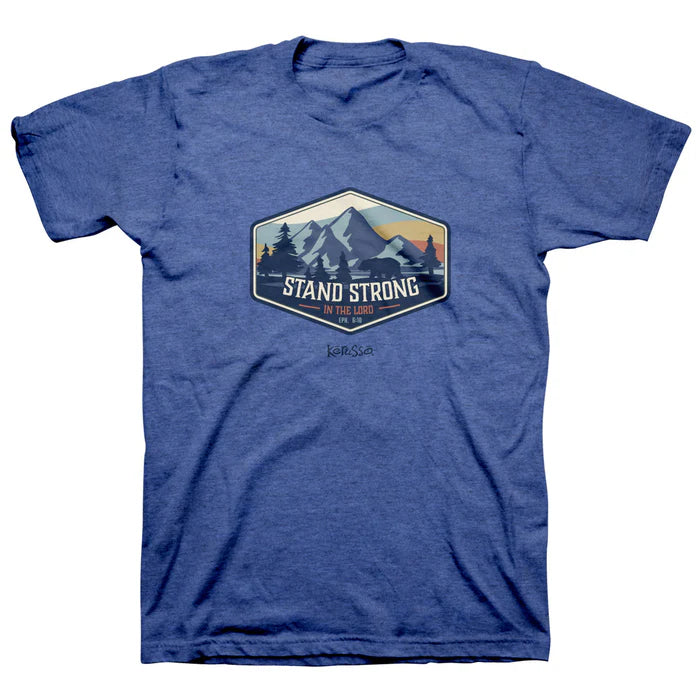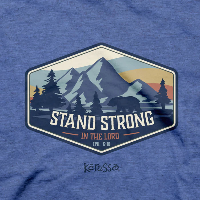 Stand up for what you believe in when you wear this outdoorsy “Stand Strong Crest” Kerusso® T-Shirt in Royal Heather. On our own, we lack the strength to face the challenging elements of this life and come out on top. When we choose to follow Jesus, we can lean into His strength with courage, trusting Him to hold us upright.