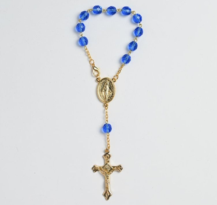 8mm Sapphire Crystal Gold Auto Rosary