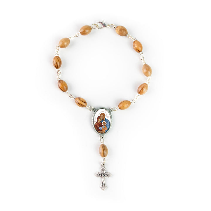 This hand-sized Holy Family Byzantine, Holy Land Olive Wood Pocket Auto Rosary is conveniently sized so that it can be carried with you in a pocket or purse wherever you go, or hung somewhere as a reminder of your faith. The lobster clasp makes it easy to hang these prayer beads anywhere: car mirrors, door knobs, desk lamps, walls, or even worn as a bracelet! These mini sized prayer beads are the perfect tool of meditation and prayer to help bring the peace of God wherever you go.