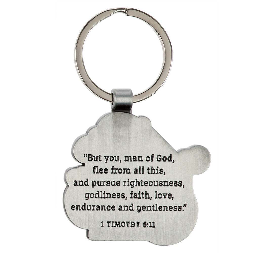 Man of God Black and Silver Metal Keychain - 1 Timothy 6:11