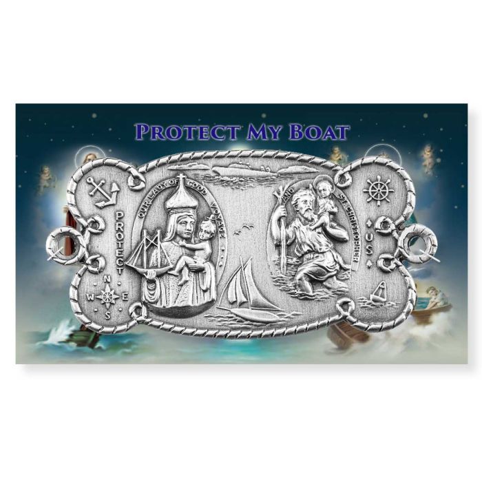 Our Lady of Good Voyage and St. Christopher Pewter Boat Medal