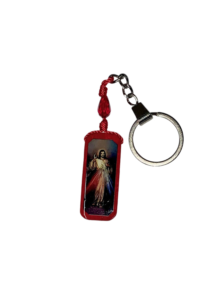 Red Divine Mercy Wood Keychain