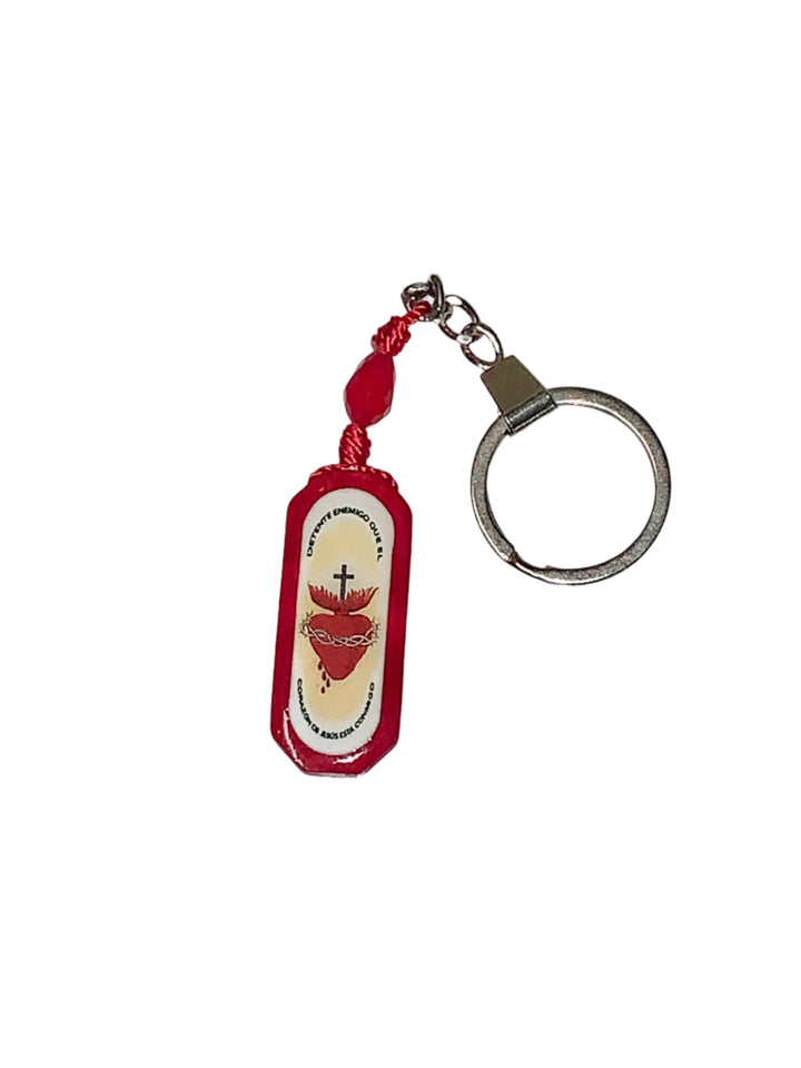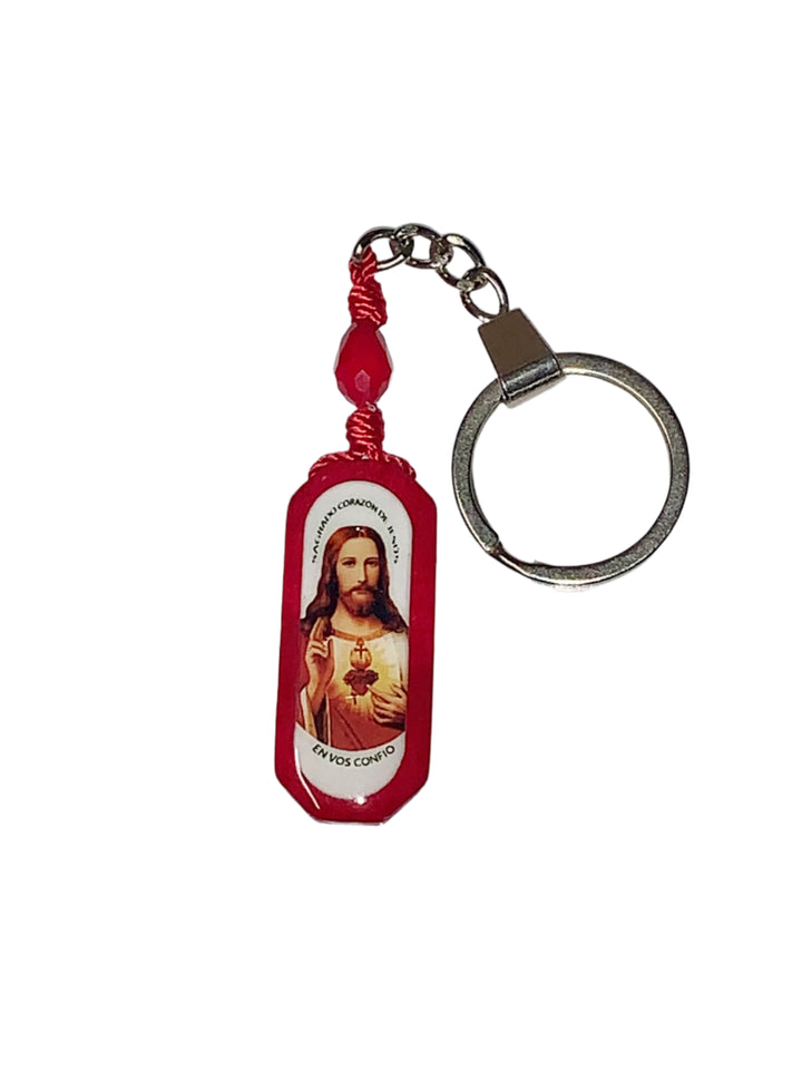 Red color wooden keychain with Sacred Heart of Jesus image