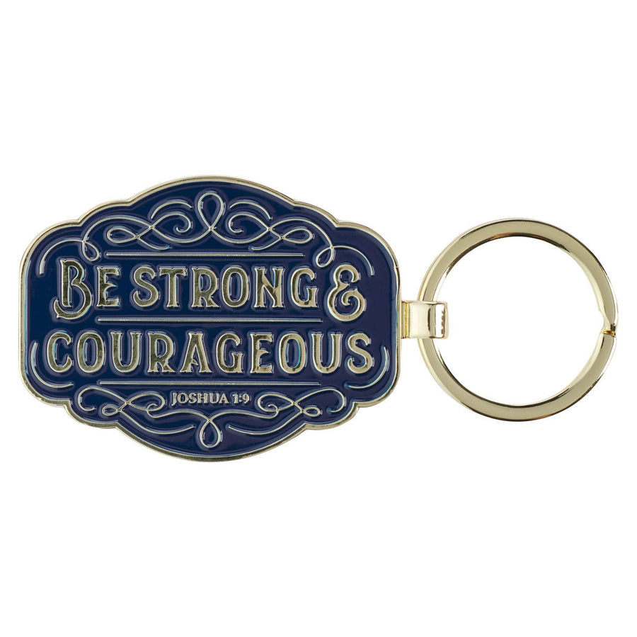 Strong and Courageous Blue Metal Keychain - Joshua 1:9