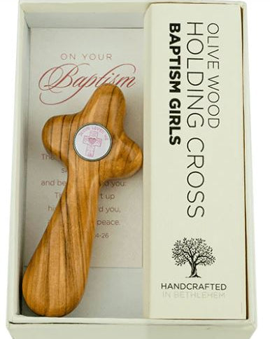 This high-quality Baptism Comfort Cross for Girls is designed to be carried with you through prayer and meditation. Carry it with you in your pocket, use it as a worry stone, or give it as a gift. Comes with a small themed medallion in the center of the cross, and is packaged in a lovely hard shell gift box.