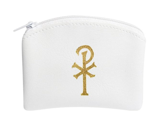 White Calf Grained Vinyl Chi-Rho Rosary Case