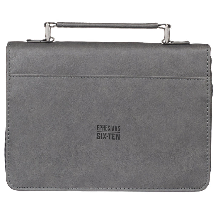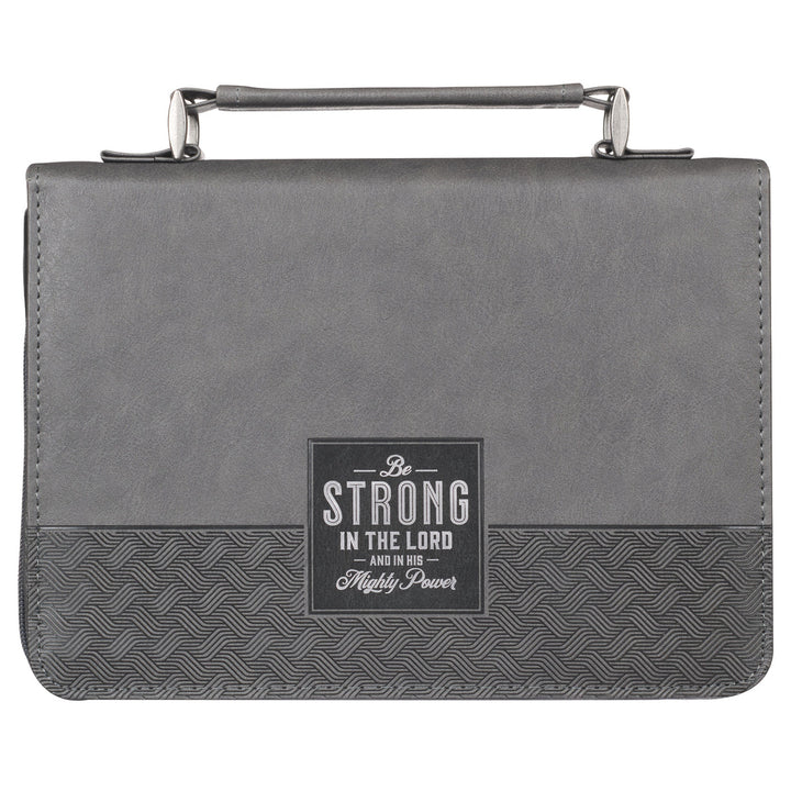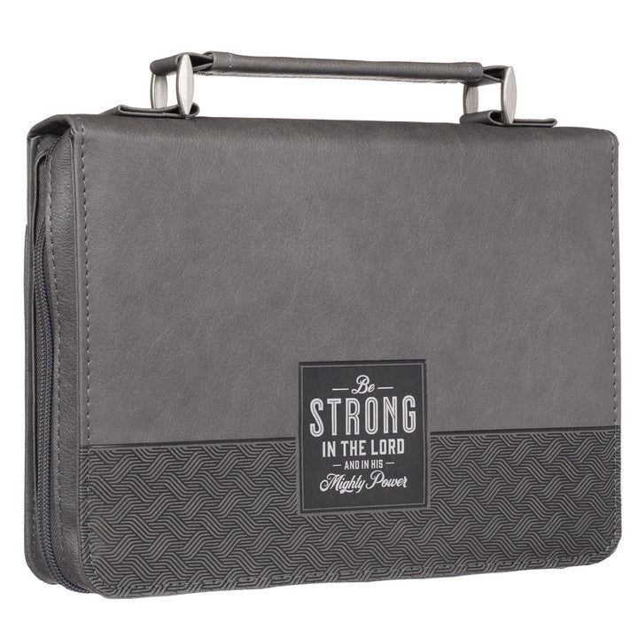 The Be Strong in the LORD Gray and Black Faux Leather Classic Bible Cover is the perfect Bible case to protect your son's Bible. With its bold call to stand firm in the faith and a nudge to put on the full armor of God, this Bible cover will encourage your son to stand for truth.