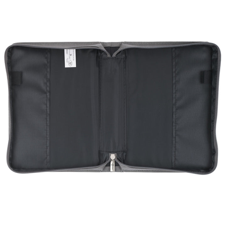 Inside the Bible case, two slip pockets securely hold the cover of your Bible, and two elastic pen loops are included to hold writing instruments.