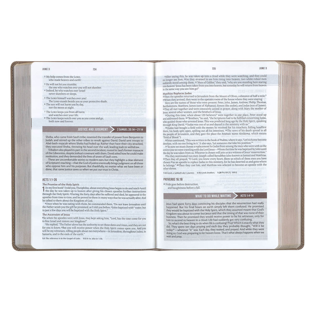Deepen your understanding of the Bible when you read the Tan Faux Leather NLT Everyday Devotional Bible for Men. This unique devotional Bible helps you relate Scripture to everyday life through morning and evening devotionals paired with each daily reading.