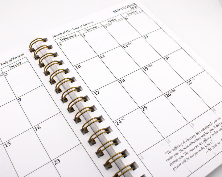 The ever-popular 2025 Saints Calendar and Daily Planner is a 16-month calendar that’s ready to be used in September 2024. Our spiral-bound design allows plenty of space for daily appointments in a lay-flat format.