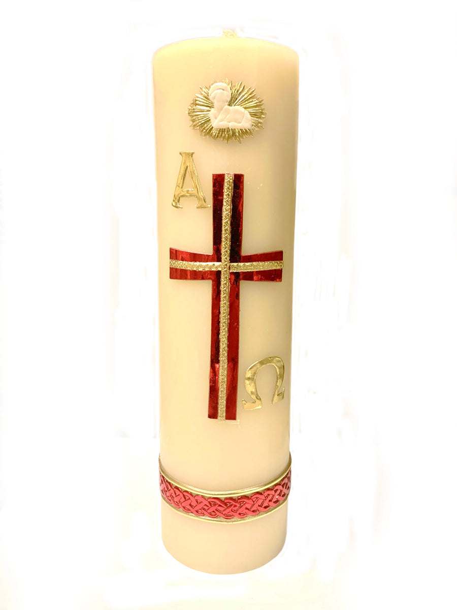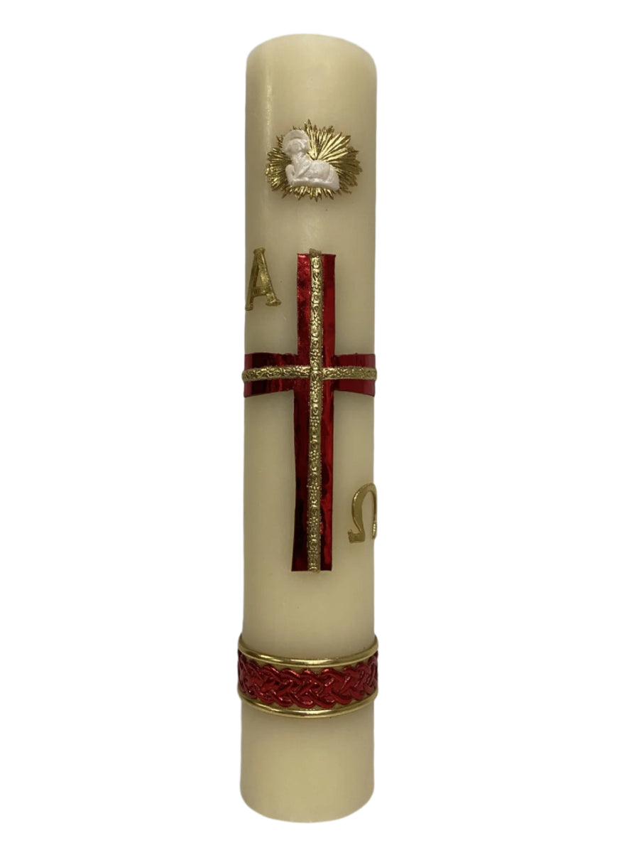 11" Red & Gold Cross Cirio Candle with Lamb