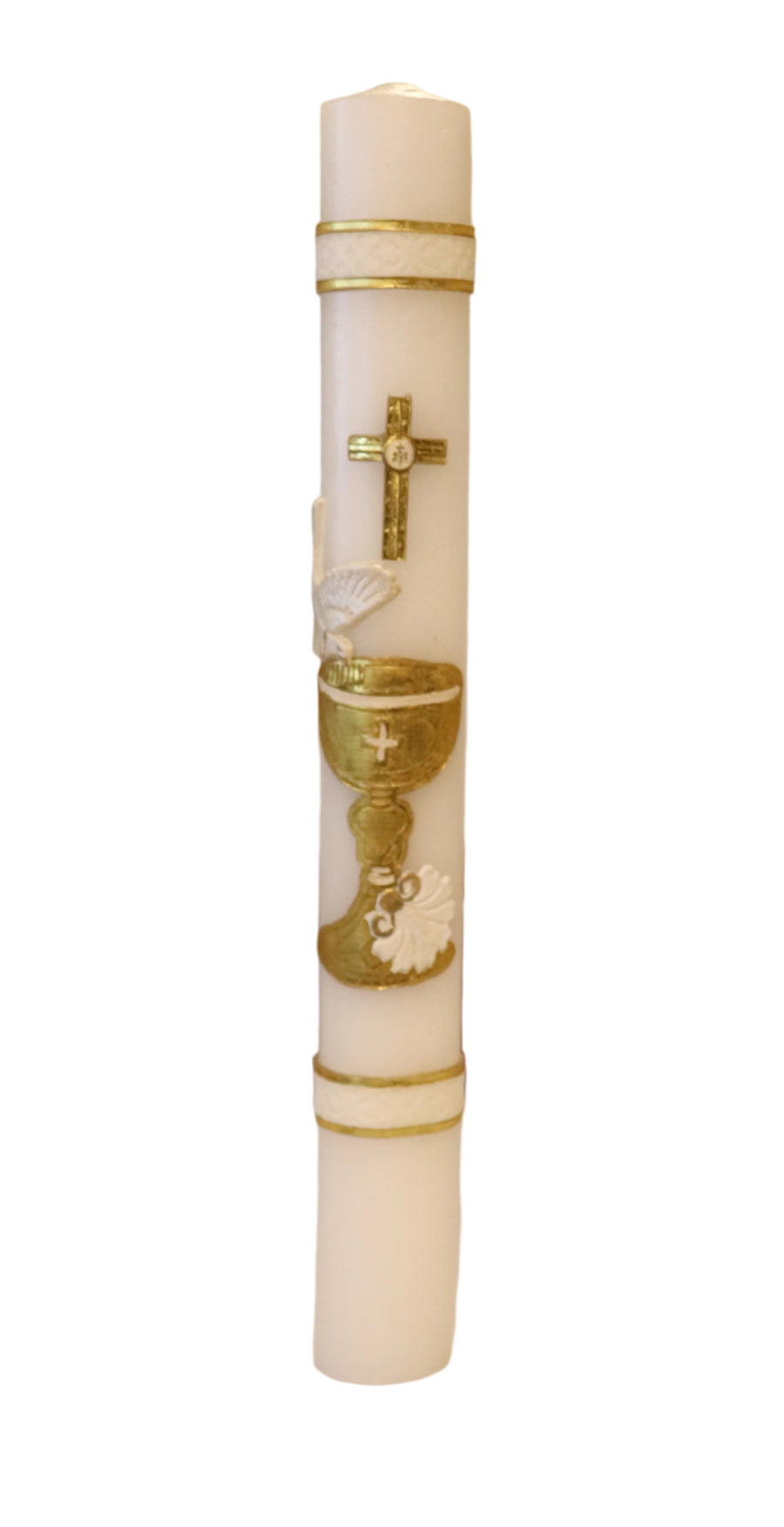 12.75" Baptism Candle with Gold Chalice & Shell Emblem