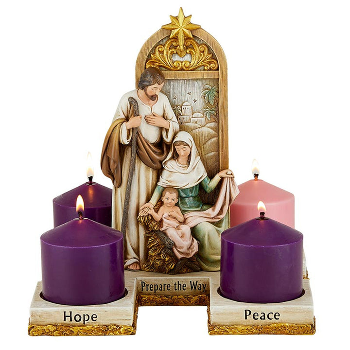 This Two-Piece Candleholder features figurines that can separate from the base for displaying with or without candles.