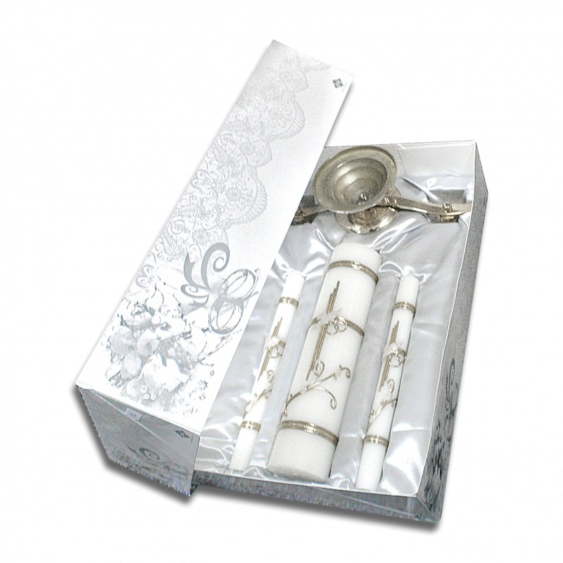 Wedding Candle Set with Silver Base and Deluxe Box