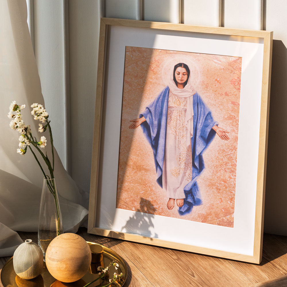 This HD Photo Sublimation Print Tapestry is based on the original Blessed Mother artwork of Artist, John Nava and is printed exclusively for the Archdiocese of Los Angeles.