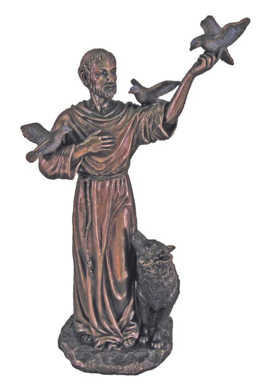 - St. Francis with Animals in lightly hand-painted cold cast bronze