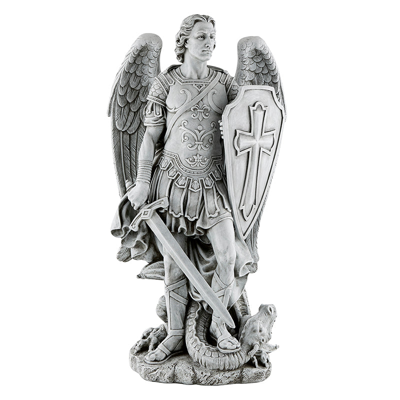 This Saint Michael the Warrior statue is 24 inches tall and features the new upgraded Michael Adams art. Great for home décor, it is sure to be an instant classic!