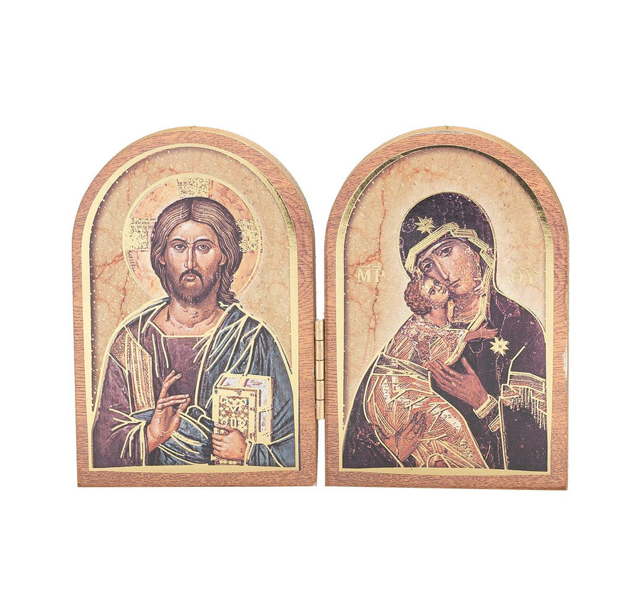 3.5" Christ All Knowing & Our Lady of Vladimir Wooden Diptych
