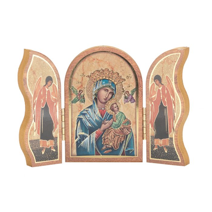 3.5" Our Lady of Perpetual Help Natural Wood Triptych