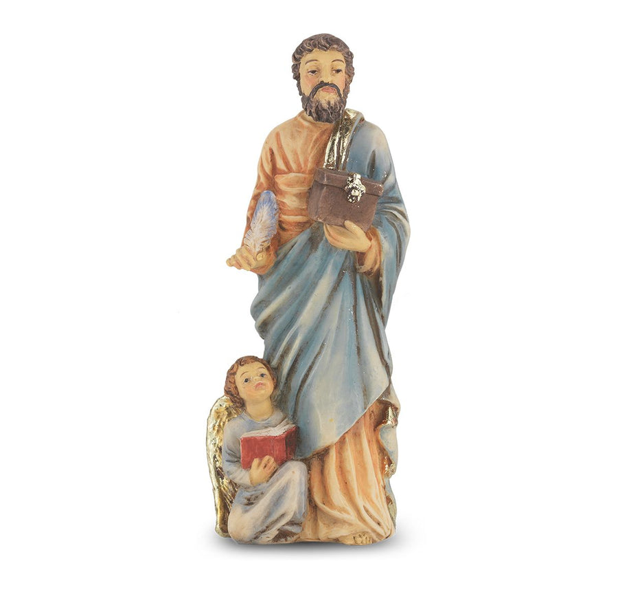 4" Cold Cast Resin Hand Painted Statue of Saint Matthew in a Deluxe Window Box