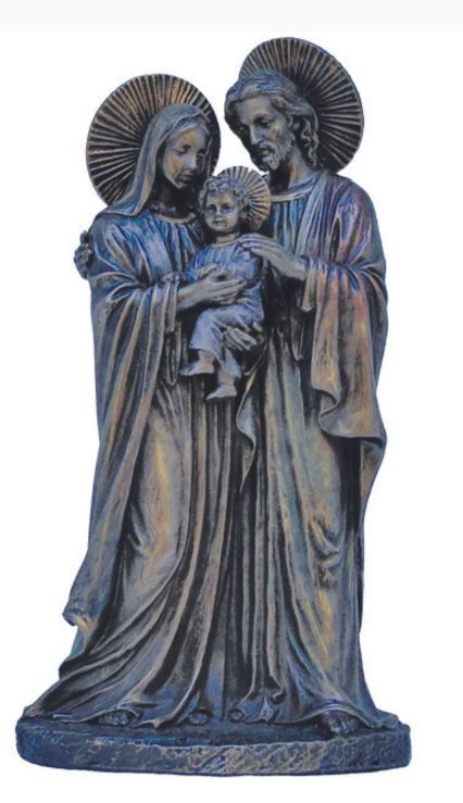 - Holy Family with halos in lightly hand-painted cold cast bronze
