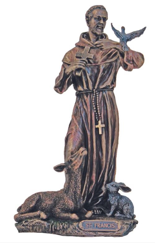 - St. Francis with animals in lightly hand-painted cold cast bronze