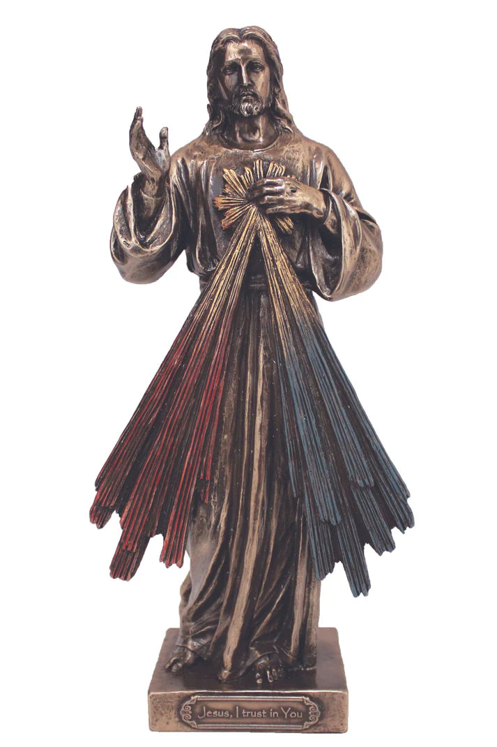 8" Lightly Hand-painted Divine Mercy Bronze Statue
