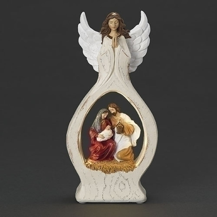 10" Angel with Light Up Holy Family Scene