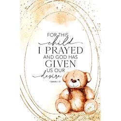 Elegant dimensional wall decor features inspiring words and artistic display design. Elongated column for center design with the words "For this child I prayed and God has given us our desire" scripted in antiqued-look black right on the plaque. 8" x 16".