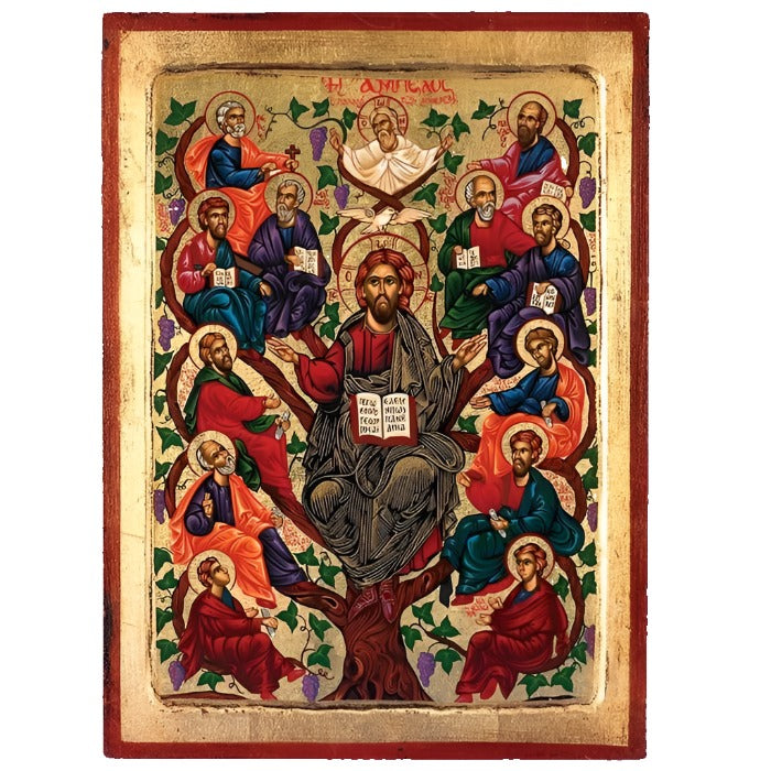 Hand-Painted Jesus, Tree of Life Gold Leaf Icon