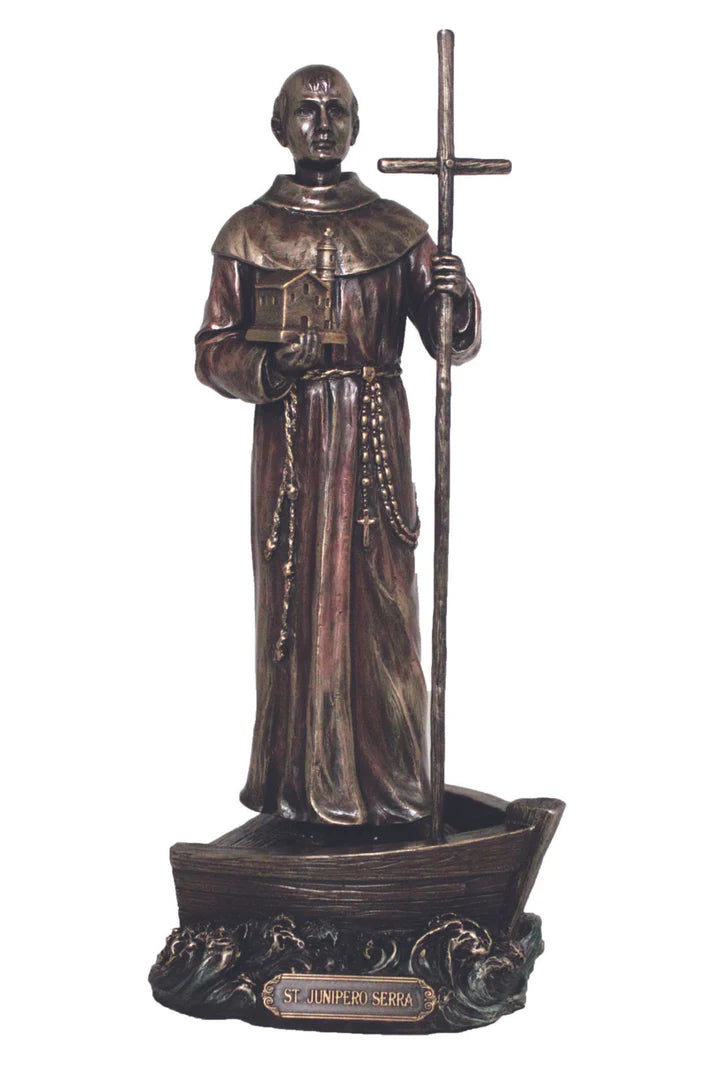 St. Junipero Serra in lightly hand-painted cold cast bronze