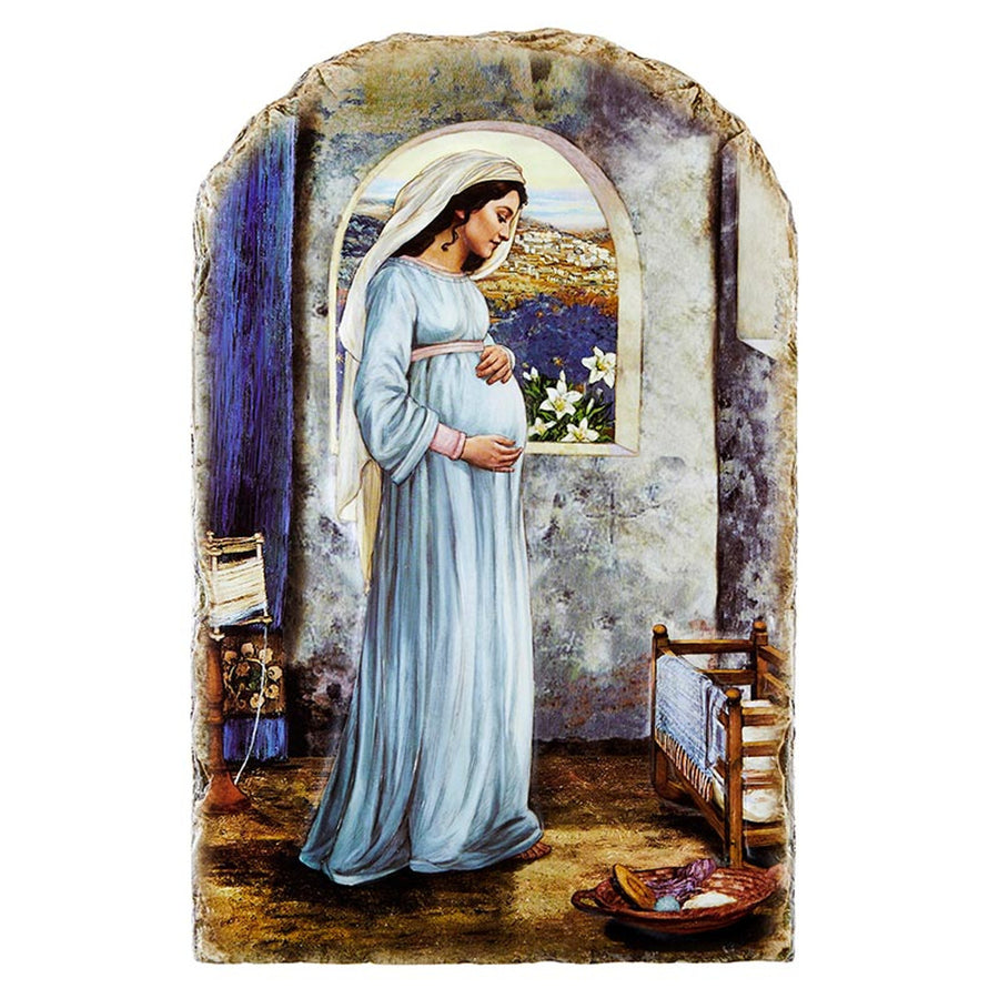 Our Mary Mother or God tile plaque features the tenderness of a mother who carries with love the hopes, dreams and prayers for her future child This is captured in the exquisite paintings by Michael Adams Presented by Avalon Gallery,™ this plaque is finely crafted in stone resin The clean lines and subtle color palette make it a treasured keepsake for many years to come This finely detailed tile can be hung on the wall or placed on the wire stand included