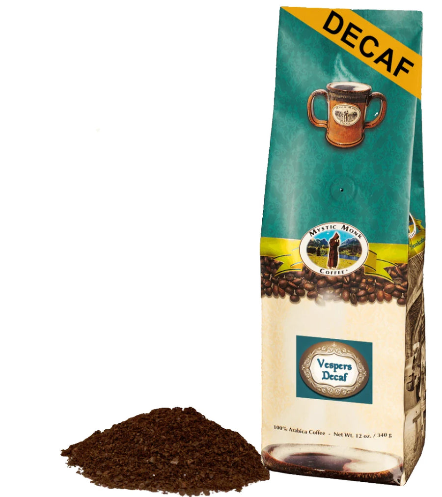 For coffee drinkers who like spending a cool, gentle evening drinking a cup of flavorful dark-roast decaffeinated coffee, try Mystic Monk's "Vespers Decaf" today.