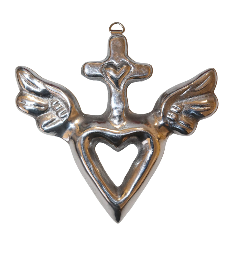 Pewter Heart with Cross and Wings Plaque