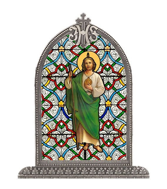 6.5" Saint Jude Silver Stain Glass Arch Plaque