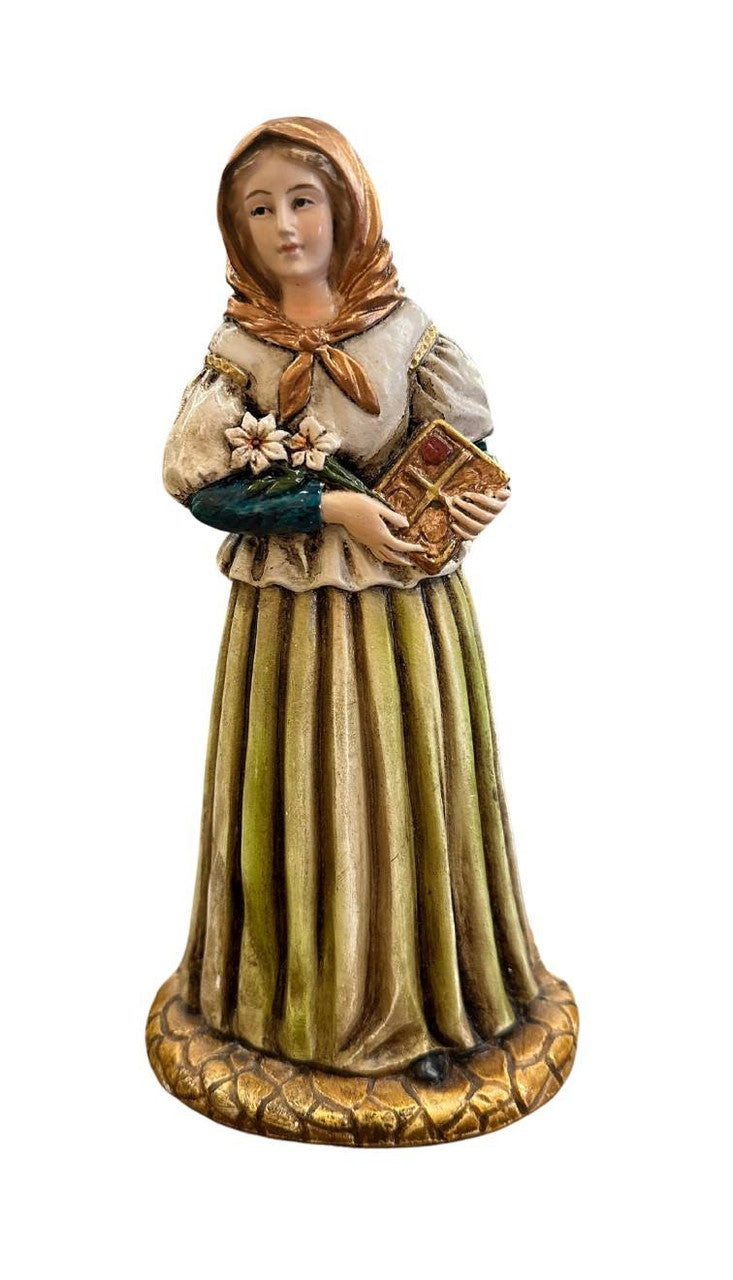 Honor the patron saint of mental health and epilepsy with our St. Dymphna Statue, beautifully handcrafted and hand-painted in Colombia. This elegant figure depicts St. Dymphna with a serene and compassionate expression, reflecting her role as a beacon of hope and healing. Each statue is meticulously crafted by skilled artisans, showcasing intricate details and vibrant colors that bring her to life. Ideal for personal devotion or as a thoughtful gift, this statue offers comfort and inspiration, serving as a powerful reminder of faith and resilience.