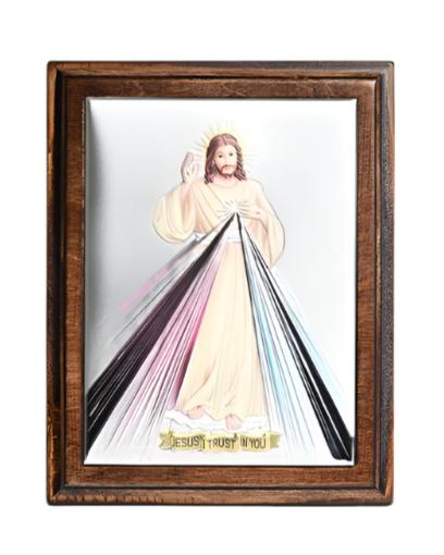 Sterling Silver & Wood Divine Mercy Plaque