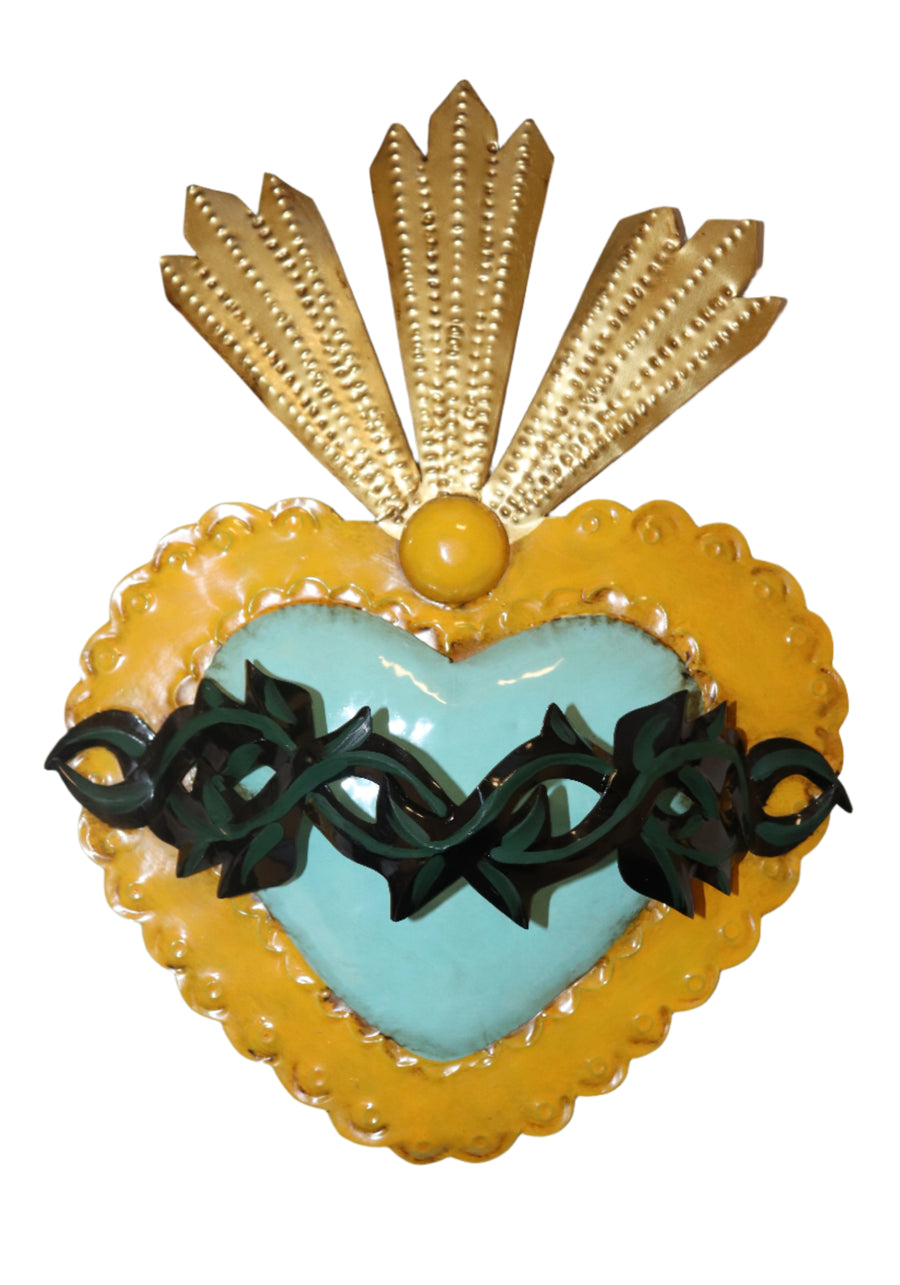 Hand Painted Tin Heart with Crown Plaque